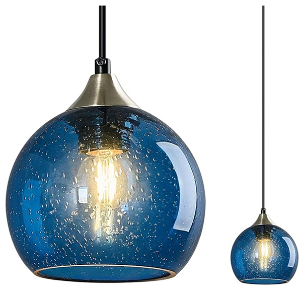 Hand blown glass Marble blue technic, unique globe shape for your kitchen island over dining room table.